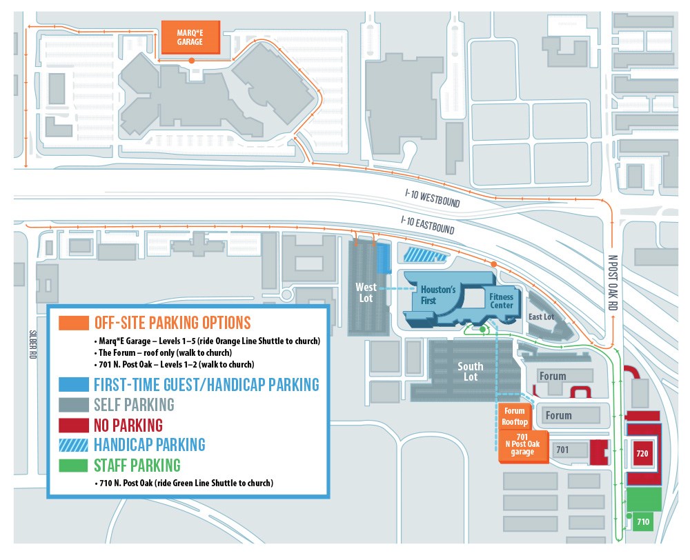 Some of our faithful shuttle parkers might remember parking in garages at the 710 and 710 N. Post Oak office buildings on the other side of the street from the church. Due to the new METRORapid lanes down the middle of N. Post Oak, these garages are no longer an option for us. You can still use the 701 N. Post Oak and Forum garages, both accessible from N. Post Oak.